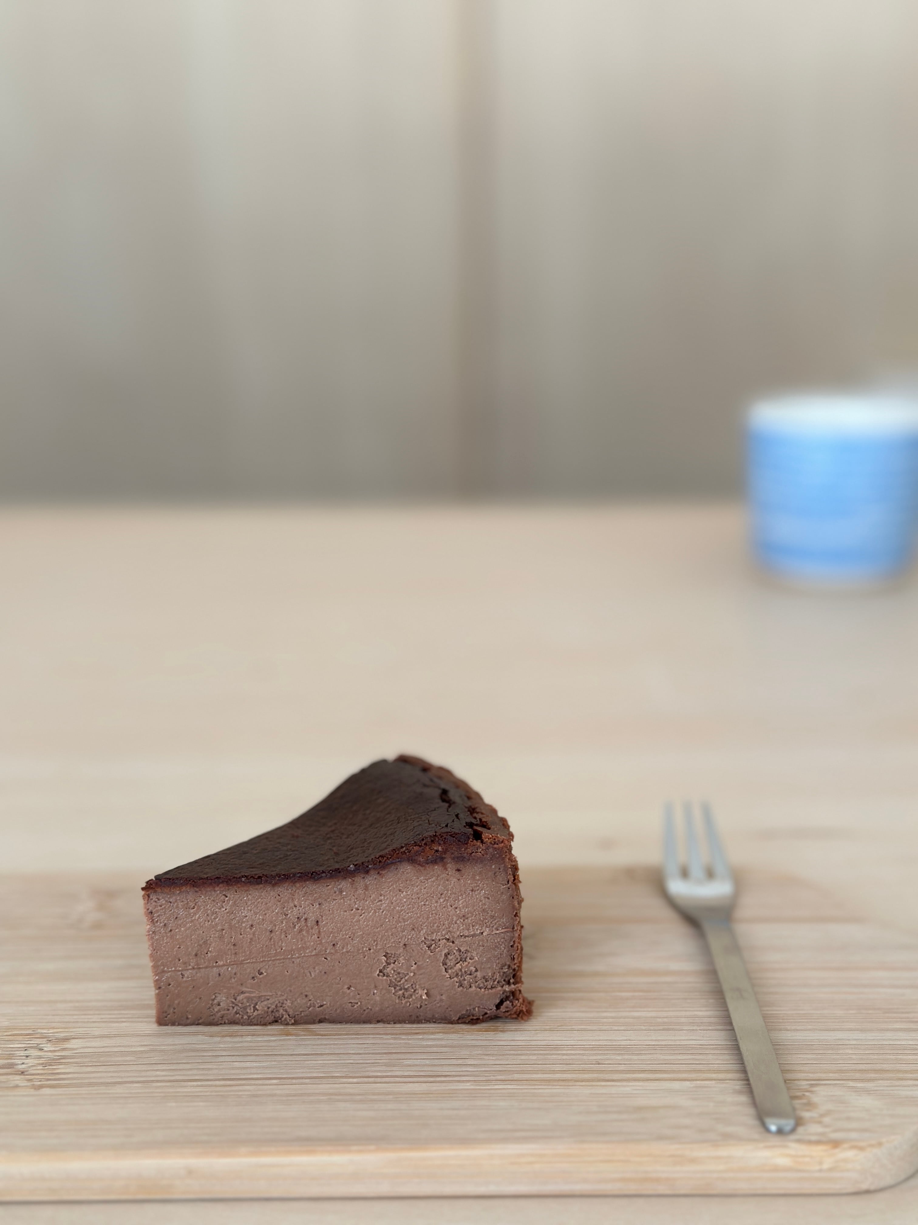 ダークチョコレートを使用し、高温、短時間で焼き上げる事で生チョコのような食感のチーズケーキに仕上げました。